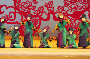 達(dá)斡爾族有語言沒有文字,然而在《神奇的達(dá)斡爾》演出現(xiàn)場,觀眾卻能夠感受到演員通過聲音和肢體語言記錄下來的活的文字,并且重新思考非物質(zhì)文化遺產(chǎn)的意義所在。近兩個(gè)小時(shí)的演出,觀眾對(duì)達(dá)斡爾族的非物質(zhì)文化遺產(chǎn)有了直觀的感受:達(dá)斡爾族搖籃,它的制式體現(xiàn)了達(dá)斡爾人對(duì)生命的思考和對(duì)自然的尊重;哈尼卡,達(dá)斡爾族傳統(tǒng)的剪紙藝術(shù),伴隨著金色的童年,充實(shí)著達(dá)斡爾人色彩斑斕的心靈世界;達(dá)斡爾族頸力賽,勞動(dòng)之余一項(xiàng)普及性民間傳統(tǒng)體育競技運(yùn)動(dòng),給人們平常的生活帶來無窮的樂趣——它們,都于2007年被列入第一批內(nèi)蒙古自治區(qū)非物質(zhì)文化遺產(chǎn)保護(hù)名錄。不僅如此,曲棍球(達(dá)斡爾語為“波依闊”,達(dá)斡爾族人喜愛的民間傳統(tǒng)體育項(xiàng)目)、魯日格勒(達(dá)斡爾族民間舞蹈,多表現(xiàn)狩獵生活和勞動(dòng)場面)、烏春(達(dá)斡爾族特有的說唱藝術(shù))還被列入第一批國家級(jí)非物質(zhì)文化遺產(chǎn)保護(hù)名錄。