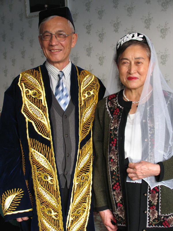 烏孜別克族男子的傳統(tǒng)服裝是一種長度過膝的長衣,長衣有兩種款式,一種為直領(lǐng)、開襟、無衽,在門襟、領(lǐng)邊、...