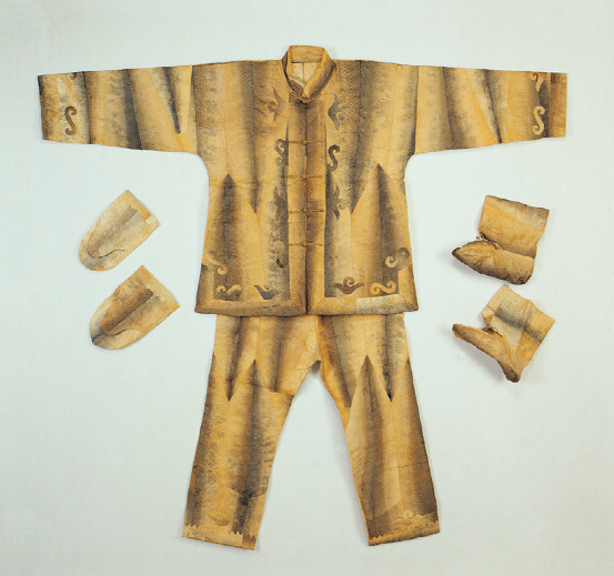 以魚皮為衣,是赫哲族傳統(tǒng)服飾習俗的一個顯著特點。各種各樣的魚皮,具有各自的用途。例如,懷頭魚皮可以做手套、褲子、套褲、鞋幫、綁腿,大的懷頭魚皮還可以做口袋;細鱗魚、哲羅魚、鰉魚、大馬哈魚等魚的魚皮,既可以做手套,又可以做靰鞡;鯉魚皮、趕頭魚皮可以做衣服和褲子;胖頭魚皮、狗魚皮可以做褲子和魚皮線。用魚皮做的衣服古樸美觀,結實耐用,主要有“烏提口”(女式魚皮上衣)、“奧約刻” (男式魚皮套褲)、“嘎榮”(魚皮女套褲)等。