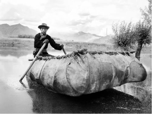 牛皮船特別適合西藏河流的特點,它吃水淺,牛皮入水,一經(jīng)泡浸便發(fā)軟,有彈性,對水中暗礁等物耐撞擊、摩擦,且自重量小,不管河道深淺,都可隨意暢行;另外,牛皮船還有一個優(yōu)點,就是可靈活多用,如果水上行程較遠,乘客人數(shù)較多可把兩只牛皮船并對捆綁在一起使用,這樣不但提高了安全性能,而且人和東西不分散,便于一次性過江。牛皮船輕便靈活,船工可隨時搬來搬去,船隨人行,遇水撐舟,上路背在肩上,都十分方便。平時不用時從河邊背到自己家存放,或者放在江岸固定的船房內(nèi)。