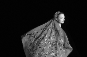星空密碼絲巾上的紋樣圖形是和上古時代的文明聯(lián)系在一起的。傳說中的“洛書”即“九宮圖”的原型,就保留在古老的苗繡服裝上。中國造型文明的起始源于星相學(xué)的認(rèn)知。關(guān)于這些傳說,在古老的苗繡中找到了印證與答案。設(shè)計沿用古老繡片上保留下來的這些神秘符號,通過再演繹,讓古老的智慧穿越時空,熠熠生輝。