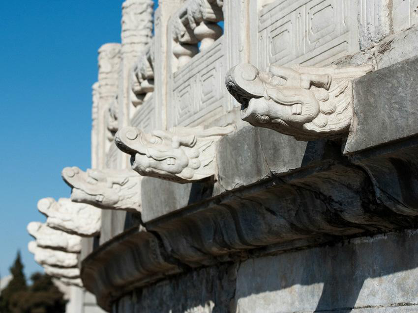 螭首是古代建筑石作制度中的主角之一,有平衡臺基望柱的重力和排水的功能,同時也是建筑上的裝飾構(gòu)件,是標(biāo)志著封建禮制建筑等級的象征,是實用與裝飾的完美結(jié)合的建筑裝飾小品。節(jié)奏和韻律是中國古建筑的重要特點。