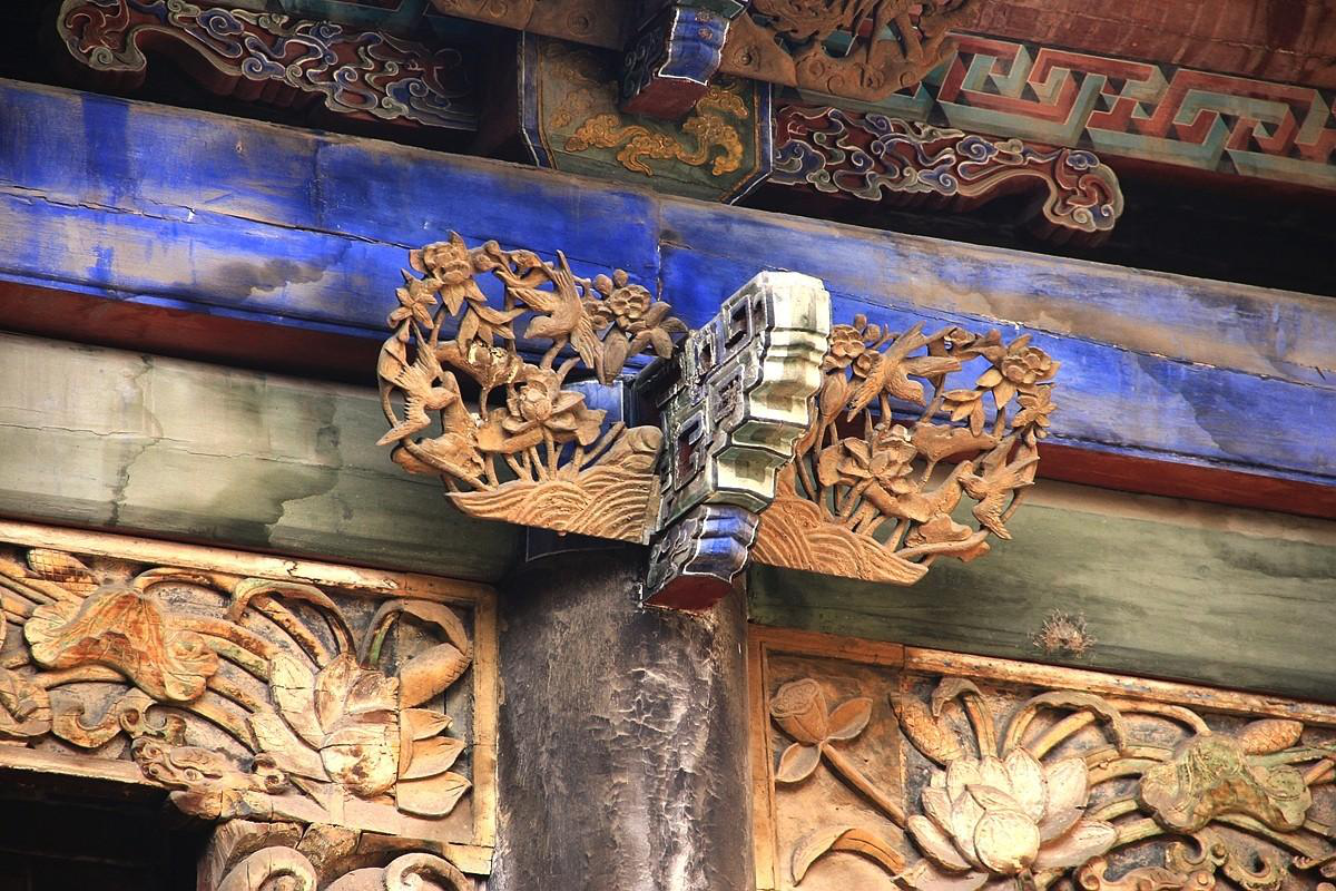 王家大院的磚雕、木雕、石雕,采用圓雕、浮雕、鏤雕等多種手法,運用各種象征、隱喻、諧音,甚至禁忌的藝術形式,雕刻題材豐富、技法嫻熟,體現(xiàn)了清代建筑裝飾的風格,將儒、道、佛思想與傳統(tǒng)民俗文化凝為一體。