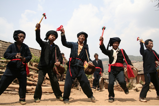 在雙江,有一個(gè)偏遠(yuǎn)的小山村,因這里“出產(chǎn)”蜂桶鼓和蜂桶鼓舞而遠(yuǎn)近聞名,它就是邦丙鄉(xiāng)南直村。蜂桶鼓和蜂桶鼓舞是雙江布朗人的獨(dú)門絕活,完全屬于雙江布朗人。蜂桶鼓源于它的形狀像民間養(yǎng)蜂的蜂桶而得名,而蜂桶鼓的由來卻充滿了神秘的傳奇色彩。相傳: