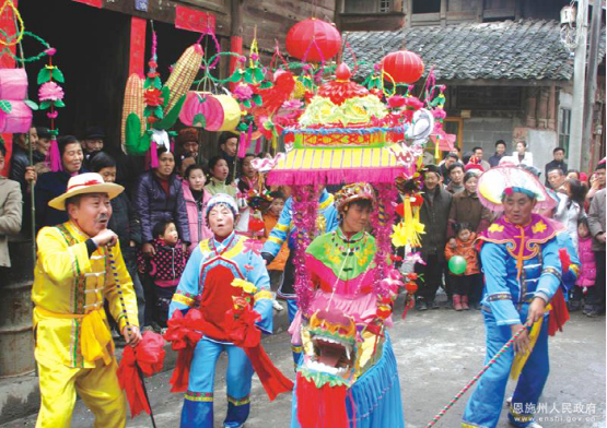 利川燈歌,又名燈調(diào),始于清代初期,已有300多年的歷史,是人們逢年過節(jié)之時(shí)以彩龍船為道具,畫地為臺、亦唱亦演的民間藝術(shù)形式。2011年5月,利川燈歌被國務(wù)院公布為第三批國家級非物質(zhì)文化遺產(chǎn)名錄。