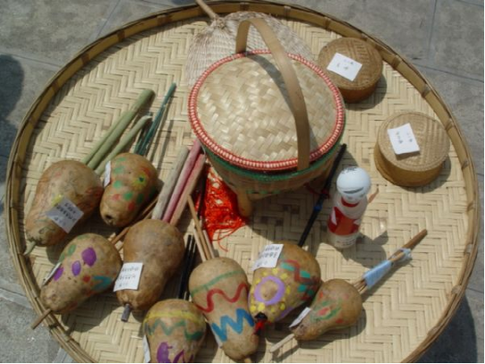 2010年上海世博會活動周期間,一臺名為《記憶云南》的18項非物質(zhì)文化遺產(chǎn)展示成為最吸引眼球的亮點之一?;顒蝇F(xiàn)場,18名云南非物質(zhì)文化遺產(chǎn)傳承人和民間藝人展示白族布扎、納西族東巴畫、傣族剪紙、傣族竹編、佤族織錦技藝等制作技藝。其間展示的傣族竹編技藝在民族文化風情濃郁,文化底蘊深厚的耿馬傣族佤族自治縣廣為流傳。俗話說傣族“無竹不成家”,自古以來,傣族就和竹子結下了不解之緣。傣家人生活地區(qū)大多竹資源豐富,他們在飲食上喜歡吃鮮竹筍和用竹筍腌制的酸筍,各種生活用具也多用竹制作而成。在翠竹掩映,綠色蔥籠的耿馬傣族村寨,傣家人尤其愛竹、用竹,并擅長竹編技藝,他們擅用竹子為材料搭橋、蓋屋,住的是竹樓,用的是各式自編的竹器,大至籬、墻、門、毯笆、竹筏、床、桌、柜、席,小至飯盒、帽、扁擔、簍、提籮、甑子、供桌、鼓凳等,無一不是用竹編織而成。有的竹編還鑲嵌五彩圖案,富麗堂皇,專供佛寺祭掃之用,而各種精美的竹編小物品則是男女青年表達愛情的信物。傣族竹編歷史悠久,世代相傳的竹編技藝,具有鮮明的民族特色。耿馬傣族竹編工藝精細,造型樸實大方,圖案變化美觀,制品種類繁多,是優(yōu)良的實用工藝,其中以笆蘿、飯盒、檳榔盒、提籮、供桌的竹器編織技術最有代表性。笆蘿是傣語,指的是一種掛在腰間的竹簍。笆蘿編織精巧,美觀適用,既是生產(chǎn)、生活用具,又是精致的裝飾品。傣族婦女身著輕盈飄逸民族服裝,腰系一只笆蘿,走動時笆蘿隨身輕松搖擺,顯得十分樸實、精干、健美、俊俏。更為珍愛之處在于,笆蘿是傣族青年男女間愛情的傳遞物。傣族男子從小學習竹編,人人都有一手精湛的竹編技藝,青年男子總是精心編織一只笆蘿送給自己心愛的姑娘,換回一個姑娘回贈的親手織繡的筒帕。所以編織笆蘿和織繡筒帕是傣族青年“編織愛情的技藝”。如果一個小伙子不會竹編,那么他就同姑娘不會織繡一樣,說明他沒有一雙勤勞靈巧的雙手,很難找到心愛的伴侶。耿馬傣族民間竹編漆器工藝歷史悠久,世代傳承其竹編漆器主要有貢桌和提籮,傣語稱“浪擺”和“撒毫”。 “撒毫”和“浪擺”是傣族群眾從事佛教活動時的必需用品,家家戶戶都備有一套。每到潑水節(jié)或開門節(jié)、關門節(jié)時,傣家老人用“撒毫”裝各種禮佛用品,子女們則用“浪擺”和“撒毫”給父母送齋飯。平時則置于高處,不能亂放東西。僅“撒毫”的制作流程,便可分為選竹、破篾、編制、裝飾等10道工序,裝飾工藝獨特精美,集實用性和觀賞性于一體。由于傣族人民篤信佛教,竹器漆制品較多裝飾荷花、魚、蝴蝶等圖案,寓意祈求佛祖保佑,賜福予人風調(diào)雨順、吉慶有余。傣家竹編,既為人們生產(chǎn)生活所必需,也給人美的享受,真是民族工藝百花園的一朵奇葩。