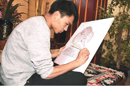 技藝上的登峰造極,次嘎把這一秘笈歸結(jié)成幾個(gè)平常的字眼:“興趣和堅(jiān)持”。從小受家族文化的熏陶,兩個(gè)兒子對傳統(tǒng)文化有著濃厚的興趣。薪火相傳也成了次嘎肩上的責(zé)任。20出頭的大兒子扎西拉達(dá)穿著白T恤,皮膚白皙、手指纖長、陽光帥氣,立志要子承父業(yè)?!案赣H告訴我即便是要做一名手工藝人,也不能放棄對文化知識(shí)的學(xué)習(xí),從小便把我送到內(nèi)地學(xué)習(xí)?,F(xiàn)在,我長大了,該回來了?!?扎西拉達(dá)的話語堅(jiān)定。