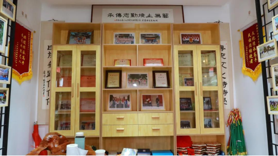 幾乎每一天,村民們都會(huì)來在傳習(xí)所打霸王鞭,這似乎成了生活中一件自然而然的事情。由于場(chǎng)地受限,往年當(dāng)訪客較多時(shí),何松康還會(huì)借助村委會(huì)的院子來開展傳承傳習(xí)活動(dòng)。