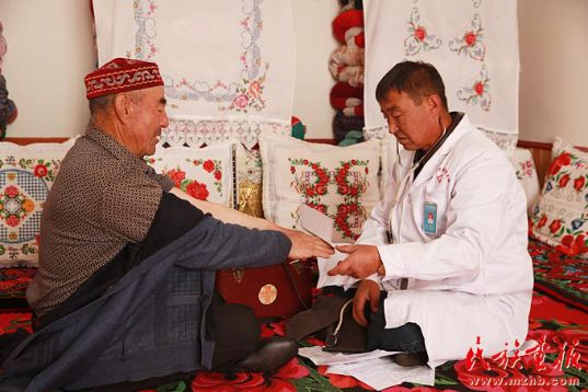 居馬泰·俄白克說,我只有一個想法,就是盡己所能為更多牧民解除病痛。“不管病人有錢沒錢,我都要先把病看好”。從醫(yī)20多年來,他個人為牧區(qū)牧民減免的醫(yī)藥費等已超過10萬元。而居馬泰·俄白克一家五口的生活,全靠他一個人的工資。他因過度勞累,患心臟病,不適合在高原工作。當(dāng)?shù)匦l(wèi)生局領(lǐng)導(dǎo)準備把他調(diào)至農(nóng)業(yè)村,但是他都婉言謝絕了。妻子動了5次手術(shù),他都因為在牧區(qū)巡診,沒有陪伴過,孩子還小,家里的重擔(dān)都讓妻子承擔(dān),說起這些,居馬泰·俄白克心里很愧疚。