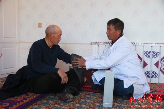 “這兩年,包扎墩冬牧場的變化太大了。這里以前沒有電、電話和道路,牧民就醫(yī)十分困難。但黨中央沒有忘記生活在這里的牧民,不僅在這里新建了衛(wèi)生所,而且還通了電、電話和柏油路……這都得益于國家的好政策。醫(yī)療力量不斷得到充實,原來這里只有兩名醫(yī)生,到現(xiàn)在有8名醫(yī)務(wù)工作者,基本滿足牧民的就醫(yī)需求。老鄉(xiāng)們看病不發(fā)愁,是我最大的愿望?!本玉R泰·俄白克很欣慰地說。