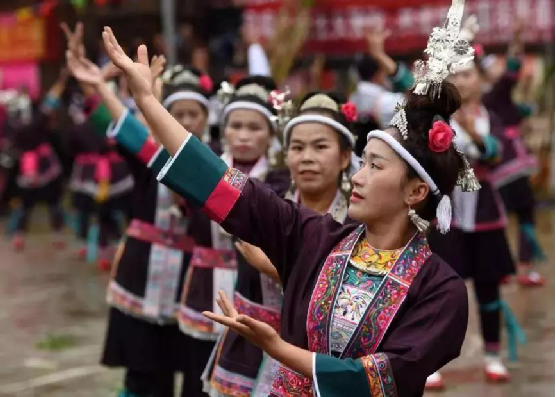 侗族婦女在表演民族舞蹈