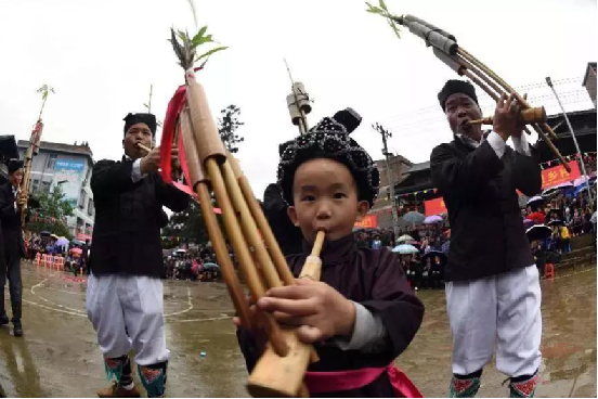 小孩在吹蘆笙