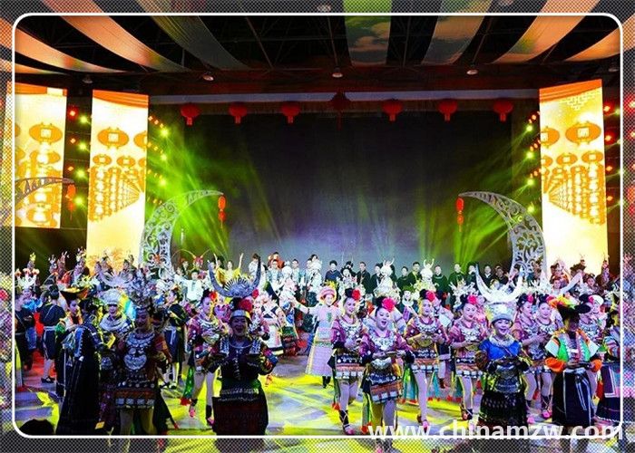 中國(guó)苗族網(wǎng)訊 2019年1月19日,由貴州省社科聯(lián)、貴州民族大學(xué)指導(dǎo),貴州省苗學(xué)會(huì)主辦,貴陽(yáng)市苗學(xué)會(huì)、六盤水市苗學(xué)會(huì)、安順市苗學(xué)會(huì)、畢節(jié)市苗學(xué)會(huì)、銅仁市苗學(xué)會(huì)、黔西南州苗學(xué)會(huì)、黔東南州苗學(xué)會(huì)、黔南州苗學(xué)會(huì)、貴安新區(qū)苗學(xué)會(huì)、多彩貴州城建設(shè)經(jīng)營(yíng)有限公司共同協(xié)辦的“迎新春-蝶韻楓彩鼓聲來(lái)”2019春節(jié)聯(lián)歡晚會(huì),在貴州省貴陽(yáng)市“多彩貴州城”展示中心隆重舉辦。貴州省9個(gè)州市及貴安新區(qū)苗族、布依族、侗族、土家族、彝族、仡佬族、水族、回族、白族、瑤族、壯族、毛南族、蒙古族、仫佬族、羌族、滿族等17個(gè)少數(shù)民族載歌載舞歌盛世,歡天喜地迎新春。 應(yīng)邀出席春晚的領(lǐng)導(dǎo)嘉賓有貴州省人大常委會(huì)原副主任、省苗學(xué)會(huì)老會(huì)長(zhǎng)楊光林,以及貴州省人大常委會(huì),貴州省社科聯(lián),貴州省民政廳,貴州省政協(xié),貴州民大,貴州省政協(xié),貴州省文化和旅游廳,貴州省總工會(huì),貴州省文聯(lián)、貴州省人大、省委宣傳部、省民政廳,民宗委,社科聯(lián),貴州省八大民族學(xué)會(huì)的相關(guān)領(lǐng)導(dǎo)等應(yīng)邀出席并觀看演出。 春晚得到了貴州省委宣傳部領(lǐng)導(dǎo)關(guān)心,省委常委、省委宣傳部慕德貴部長(zhǎng)對(duì)晚會(huì)專門作出重要批示,要求把春晚打造成一臺(tái)“思想性、藝術(shù)性、觀賞性統(tǒng)一的文藝晚會(huì),豐富春節(jié)期間群眾性精神文化生活,營(yíng)造歡樂(lè)、喜慶、團(tuán)結(jié)、祥和的節(jié)日氛圍”。 晚會(huì)緊扣“同心共筑中國(guó)夢(mèng),中華民族一家親”主題,圍繞共同團(tuán)結(jié)奮斗、共同繁榮發(fā)展主題,繼承和弘揚(yáng)中華民族優(yōu)秀傳統(tǒng)文化,積極展示貴州少數(shù)民族同胞改革開放40周年來(lái)翻天覆地的新變化,用少數(shù)民族原生態(tài)歌舞形式歌頌黨、歌頌祖國(guó)、歌頌民族大團(tuán)結(jié)。春晚節(jié)目,由貴州省各州市國(guó)家非遺保護(hù)節(jié)目、在中央春晚節(jié)目,由貴州省各州市國(guó)家非遺保護(hù)節(jié)目、在中央級(jí)、省市級(jí)比賽中獲獎(jiǎng)的各民族原生態(tài)蘆笙舞、錦雞舞、銅鼓舞、板凳舞,苗族飛歌、古歌、大歌、情歌、絕技;民族盛裝走秀;非遺文化展示等26個(gè)節(jié)目組成。 晚會(huì)由240位貴州各地苗族演員,50位苗族、布依族、侗族、仡佬族、彝族、土家族、回族等17個(gè)少數(shù)民族演員,在主持人的開場(chǎng)白介紹中,手持燈花、衣著盛裝在鼓點(diǎn)笙曲中步入會(huì)場(chǎng)。 接著,被國(guó)內(nèi)外譽(yù)為“東方迪斯科”的黔東南州臺(tái)江《反排木鼓舞》拉開笙鼓迎春的序幕,雷山國(guó)家級(jí)非遺節(jié)目《掌坳銅鼓舞》、《錦雞舞》,貴陽(yáng)市花溪區(qū)《花鼓舞》、貴安新區(qū)原生態(tài)蘆笙舞《花坡韻》、黔南州《鼓龍鼓虎-長(zhǎng)衫龍》、兒童舞蹈《跺月亮》、畢節(jié)市納雍縣蘆笙舞《滾山珠》、凱里原生態(tài)合唱《春之歌》、安順留守兒童合唱團(tuán)《又見(jiàn)桃花開》、金竹樂(lè)隊(duì)蘆笙組合《酒歌》、銅仁市絕技《紙上飛仙》、黔西南州《板凳舞》等,一個(gè)個(gè)節(jié)目精彩絕倫、美輪美奐,舞出少數(shù)民族同胞“美起來(lái)、笑起來(lái)、富起來(lái)、強(qiáng)起來(lái)”的精神風(fēng)貌、音容笑貌。最后,貴州省17個(gè)世居少數(shù)民族240名演員齊唱《愛(ài)我中華》,在“五十六個(gè)民族五十六朵花,五十六個(gè)兄弟姐妹是一家”的歌聲中把整臺(tái)晚會(huì)推向高潮,拉下帷幕。 此次春晚民族文化濃厚、明星歌手薈萃、演員陣容龐 此次春晚民族文化濃厚、明星歌手薈萃、演員陣容龐大、節(jié)目精彩絕倫。這些節(jié)目,涵蓋了東部方言、中部方言和西部方言各民族支系。遍及黔東南州、黔西南州、黔南州、貴陽(yáng)市、安順市、畢節(jié)市、六盤水市、銅仁市和貴安新區(qū)。老藝術(shù)家榜香、青年歌手阿幼朵、潘興周、雷艷、楊一方、阿娜丹、歐桑、楊佳茜、楊祖桃、楊思雨、楊廷勇、吳敏成、阿蕾倩、余秋陽(yáng)、阿依三姐妹、谷阿斯組合、阿依山娃組合等20多名少數(shù)民族歌星紛紛登臺(tái)獻(xiàn)藝,演員達(dá)300余人。 貴州省人大常委會(huì)原副主任、貴州省苗學(xué)會(huì)老會(huì)長(zhǎng)楊光林說(shuō),春晚的舉辦,有利于提高民族同胞的戰(zhàn)斗力、凝聚力、感召力!春晚牢牢把握了“百姓富、生態(tài)美”兩條底線,通過(guò)晚會(huì)形式,吹響了少數(shù)民族同胞在黨中央和貴州省委、省政府的堅(jiān)強(qiáng)領(lǐng)導(dǎo)下,致力于決戰(zhàn)脫貧攻堅(jiān),決勝同步小康、實(shí)現(xiàn)鄉(xiāng)村振興的號(hào)角。是號(hào)召大家參與國(guó)家實(shí)施的“鄉(xiāng)村振興、脫貧攻堅(jiān)”任務(wù),努力實(shí)現(xiàn)貴州人民2020年和全國(guó)人民同步實(shí)現(xiàn)小康及全國(guó)人民正在努力實(shí)現(xiàn)的“中國(guó)夢(mèng)”作出貢獻(xiàn)的動(dòng)員令! 晚會(huì)當(dāng)天,春晚組委會(huì)主任、貴州省苗學(xué)會(huì)常務