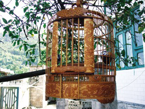選材和傳統(tǒng)工藝是布依族鳥籠制作的兩大關(guān)鍵環(huán)節(jié)。最好的用材是優(yōu)質(zhì)畫眉竹、毛竹和青竹。竹材的采伐時(shí)間,有嚴(yán)格的要求,一般是在每年的秋收以后到第二年的正月間最為合適。其它時(shí)間采伐的竹材水性重,易蛀蟲。至于竹材,則以生長(zhǎng)5到7年的竹子最為理想。這種年齡的竹料柔韌、堅(jiān)硬、鮮亮。布依族鳥籠全由精雕細(xì)鏤的各式竹節(jié)(條)組合而成,構(gòu)成部件做工精細(xì)。雕飾分花、素兩款,樣式有方、圓兩類。雕花鳥籠,從取材到最后組裝完成,需10天左右。鳥籠雕刻圖飾有“雙鳳朝陽”、“二龍戲珠”和“蝴蝶結(jié)”等等。