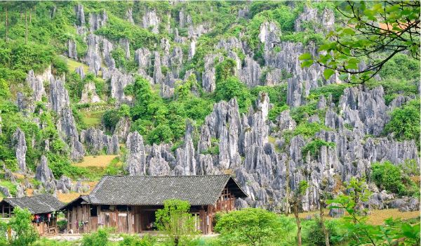 龍門村具有得天獨(dú)厚的旅游資源,這里的石林是地球上同緯度地區(qū)迄今發(fā)現(xiàn)的發(fā)育最好、生態(tài)保持最佳、?保存最完整、出露面積最大的極具科普性和觀賞性的連片喀斯特石林。?龍門村石林與樹林交相輝映,美不勝收??臻g上連片分布,?類型眾多,包含了石芽發(fā)育從幼年到青年到老年的各種形態(tài),有?針狀石林、劍狀石林、塔狀石林、柱狀石林、城堡狀石林。林區(qū)?形狀多變,景色秀麗,能從小中見大、大中見巧、巧中見奇、奇?中見幽。?龍門村石林還形成了許多惟妙惟肖的象形景觀,如老虎石、?雄鷹對(duì)峙、鬼臉石、四大金剛、三仙迎客等,極具觀賞性。石林景區(qū)的荊竹園是清白蓮教白號(hào)軍古戰(zhàn)場(chǎng),貴州省重點(diǎn)文物保護(hù)單位。